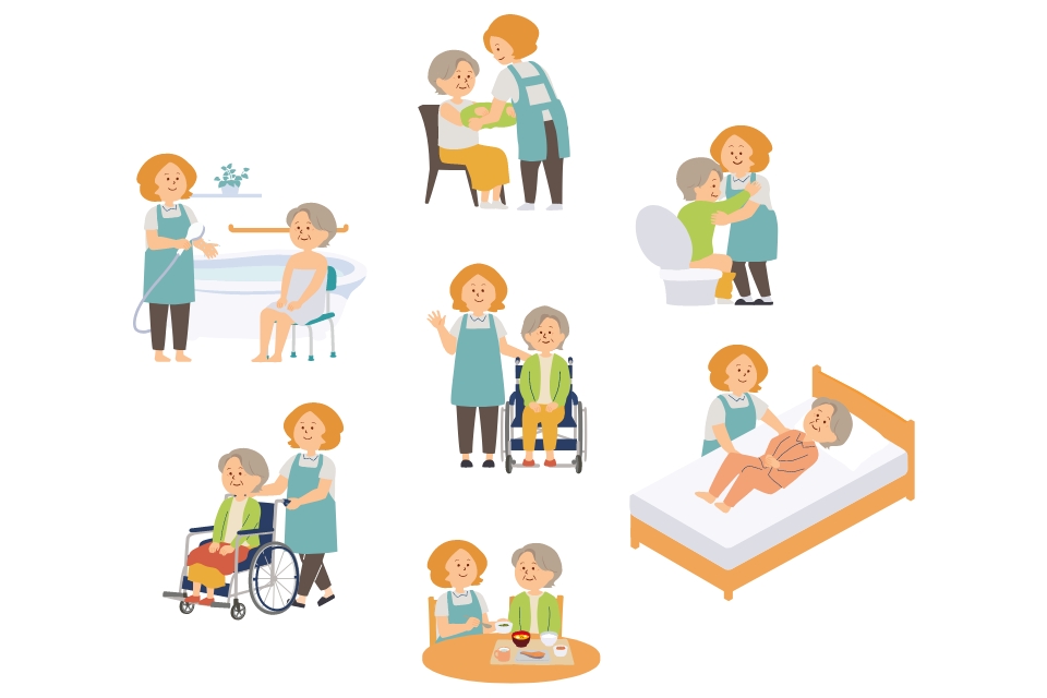 - 排泄介助:トイレの介助・おむつ交換など